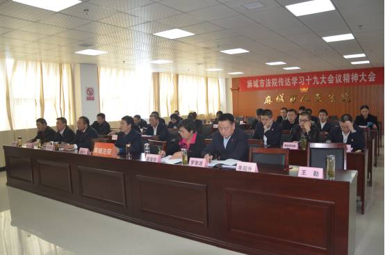 11月3日,麻城市法院召开中层干部大会,集中传达学习党的十九大精神,这是该院组织的第二次十九大精神集中学习。党的十九大召开以来,麻城市法院通过各种形式,组织干警,认真学习十九大报告精神,掀起学习热潮。