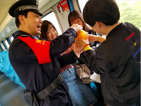 党的十九大以来,襄阳铁路公安处乘警支队全体乘务民警,学习十九大,立足岗位,点滴做起,闪光在旅途。该支队所值乘的71趟列车乘警在做好巡视、宣传、防范、调解等工作的同时,还热情为旅客多问一句,多说一点,多帮一把,多看一眼等细节服务,受到旅客好评和赞许,成为千里铁道线上一抹流动的亲切温暖的警察蓝。
